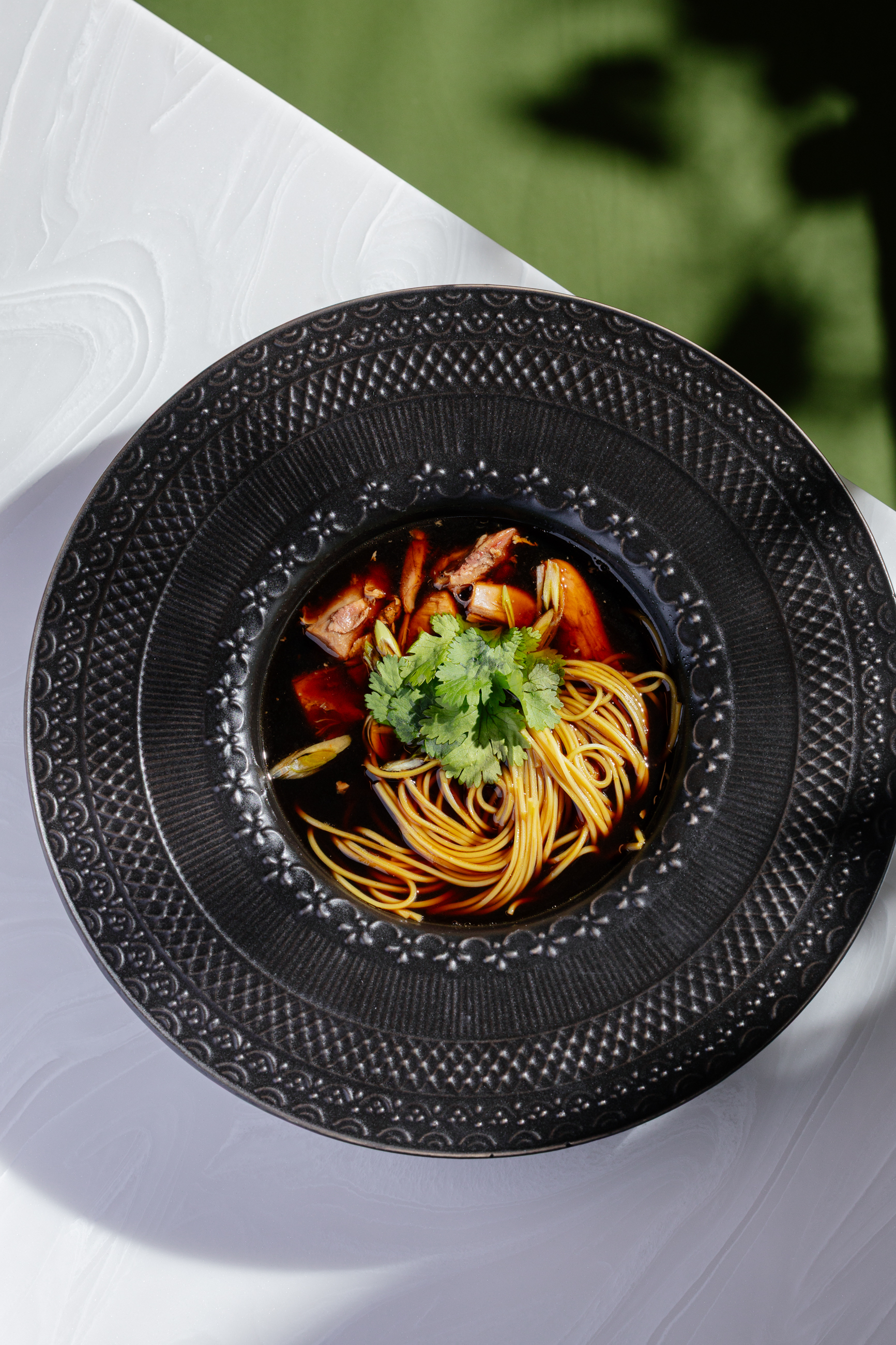 Нерку готовим в двух версиях: с томатами и соусом кимчи или с хрустящими овощами. Фермерский цыплёнок запечён и дополнен гречей с грибами. Утка — в формате конфи, подаётся с ленивыми варениками. Ещё одно горячее — казаречче с томлёной говядиной. Мясо мы томим с овощами, пасту глазируем всё в курином консоме, а завершаем блюдо воздушным сырным муссом.