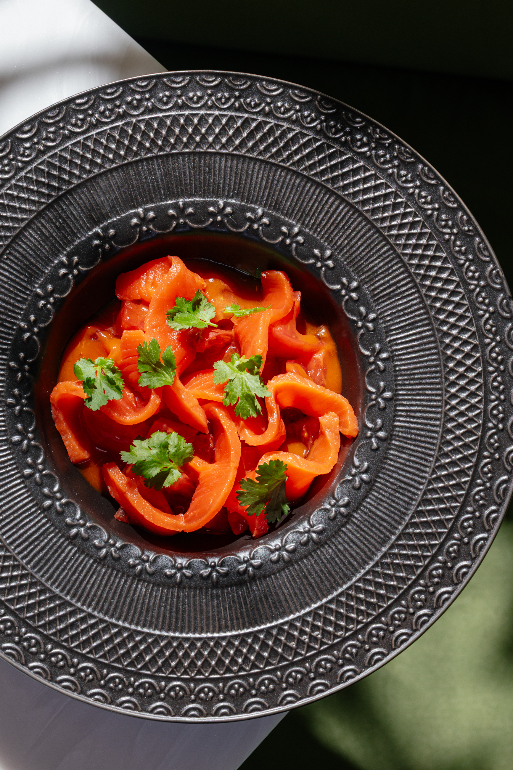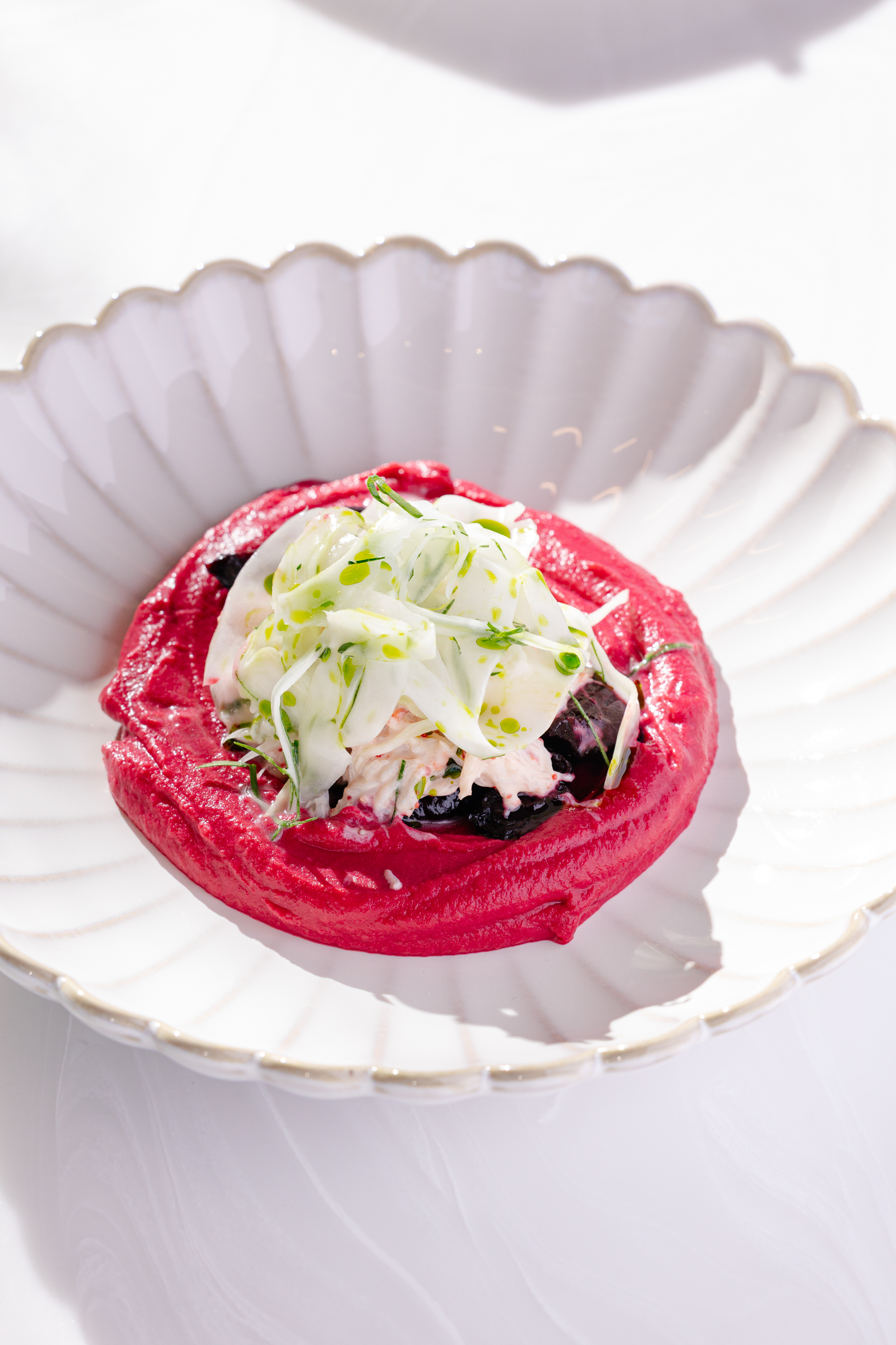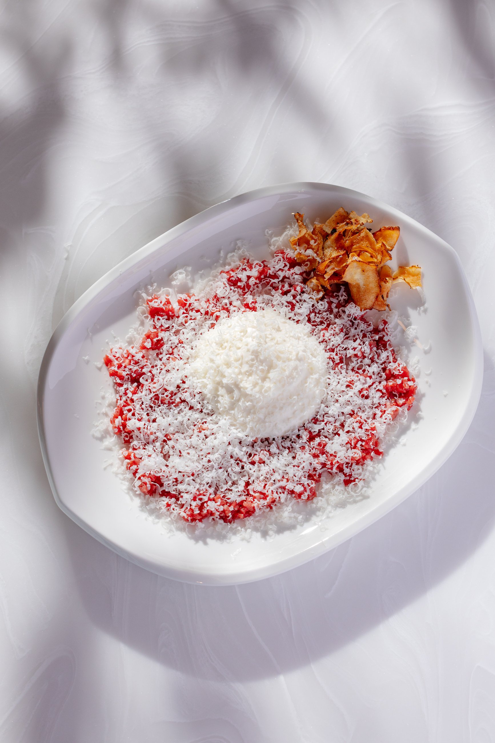 Свекольный хумус подаём с крабом, дополняя слайсами фенхеля. В тартаре из мраморной говядины из специй мы оставили только соль, перец и оливковое масло, чтобы сохранить насыщенный вкус мраморного мяса, которое идеально сочетается с пикантным ароматом выдержанного пекорино романо. Камбалу сопровождаем кремом из печёного картофеля и карамелизированным луком. А еще наш шеф Сергей Карпов рекомендует попробовать консоме из утки в азиатском стиле, с пряными нотами чили и имбиря.